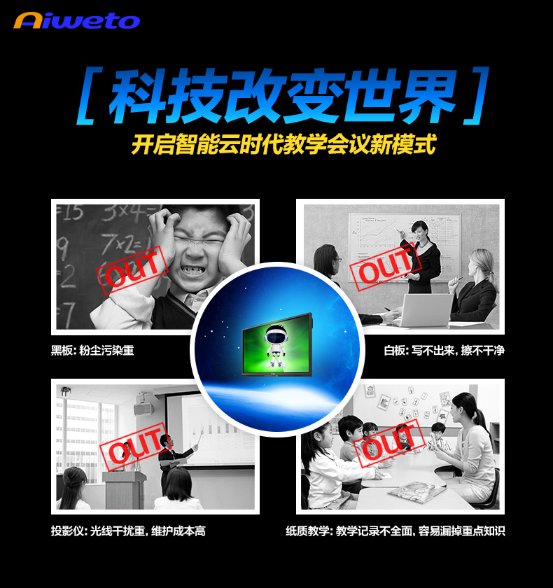 AW系列-多媒體教學一體機,高清大屏顯示,壁掛支架多種使用方式,人性化機型設計,立式與掛式兩種使用方法可交替使用,避免使用環(huán)境發(fā)生變化時產生的資源浪費問題采用LED背光源長壽命,低功耗,環(huán)保節(jié)能。智能電子白板,各種文件一鍵加載,多點觸控智能電子白板適用于各種商務會議,支持手寫批注,兼容日常office辦公軟件,本地、U盤、網盤、局域網數(shù)據輕松駕馭。書寫流暢,減少視覺誤差,高端企業(yè)必備,多重主題背景,筆形色彩,任意選擇。高端配置 讓運行速度,完美兼容WIN7,WIN8 隨意切換。