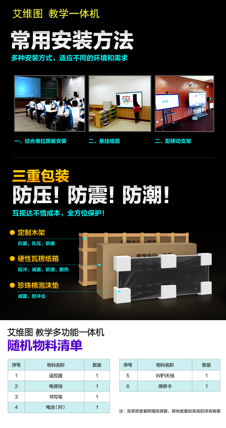 用戶手冊,保修卡,合格證,電源線,遙控器、電池、白板光盤,觸摸筆,壁掛支架